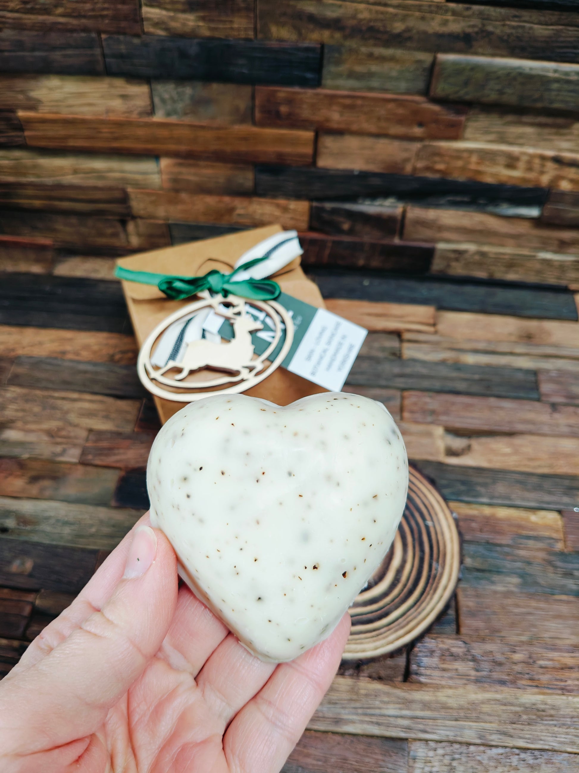 Juniper Soap sentence with Juniper, patchouli & orange essential oils available in Heart shape.
